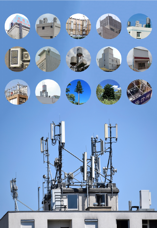 看得見的基地台會讓人恐慌想防護、但是更多的是看不見、外觀用水塔、廣告招牌、冷氣室外機、等來偽裝的基地台最讓人失去戒心,卻又24小時不間斷的輻射鄰近住戶的身體健康、但又找不到電磁波來源才是最可怕;而且就算住家附近真的測不到基地台電磁波,但是很難避免後續基地台的增設,所以最根本的方法就是在裝潢的時候,在牆壁上就刷摩新的防電磁波油漆(X-PAINT)、在窗戶上使用摩新的防電磁波窗紗窗簾(X-FABRIC)和防電磁波窗貼(X-FILM),一開始就做好基地台的電磁波防護,就不怕各種看得見、或偽裝、或後續增設的基地台電磁波造成住戶健康的干擾,可以避免之後要花更多錢來拆除裝潢並重做防電磁波工程,還不如一開始裝潢時就做好防電磁波的效果更好!