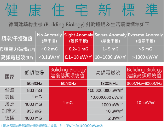 摩新可以把電磁波都降到低頻輻射低於1mG 、高頻輻射低於10uW/㎡的德國BUILDING BIOLOGY建築物生機建議的長期環境與睡眠安全數值以下,讓老闆與員工更健康、更有效率、賺更多、更幸福!