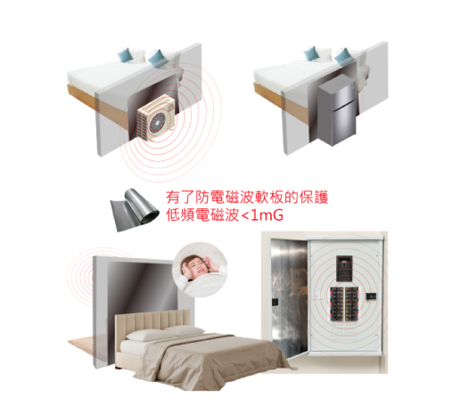 最好在裝潢的時候,在鄰近這些干擾源的牆壁貼上摩新的防磁軟板來針對這些電器用品、電箱、機房、電管等產生的低頻磁場電磁波做好電磁波防護,這樣才會住得健康!