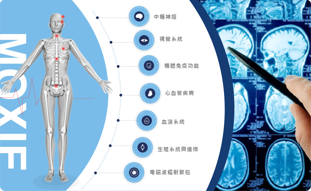神經系統對電磁輻射的作用很敏感,受其低強度反複作用後,中樞神經系統機能發生改變,出現神經衰弱症候群,主要表現有頭痛,頭暈,無力,記憶力減退,睡眠障礙 ( 失眠,多夢或嗜睡 ),白天打瞌睡,易激動,多汗,心悸,胸悶,脫髮等,尤其是入睡困難,無力,多汗和記憶力減退更為突出。這些均說明大腦是抑制過程佔優勢。所以受害者除有上述症候群外,還表現有短時間記憶力減退,視覺運動反應時值明顥延長;手腦協調動作差,表現對數字劃記速度減慢,出現錯誤較多。